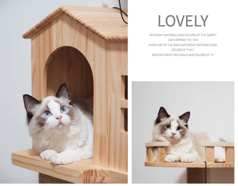 Multi Level Wooden Cat Condo House Soft Covered Accessories Large Cat Tree Pet Products 2021 Pet Accessories gatos Modern Large